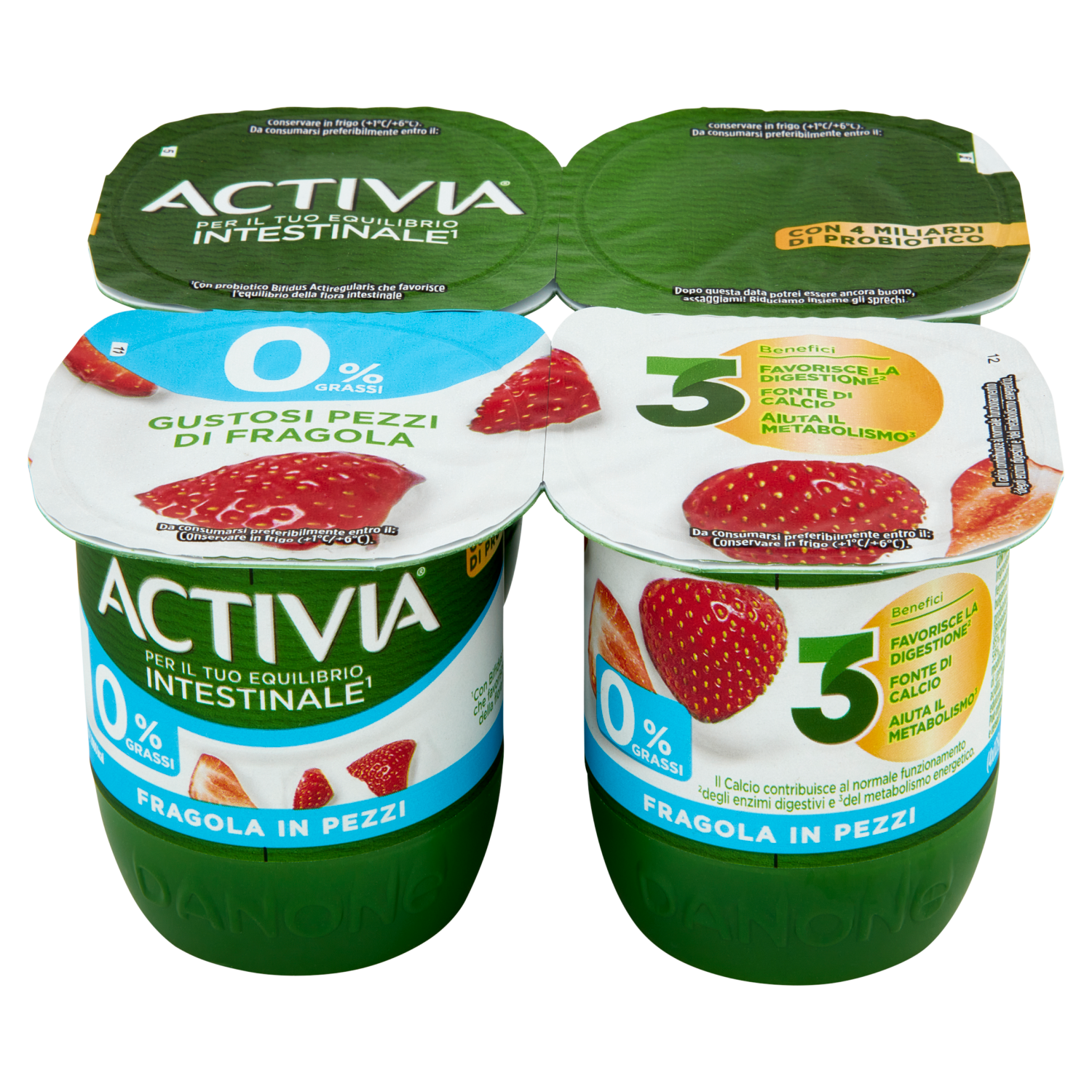 ACTIVIA Yogurt con Probiotico Bifidus, 0% Grassi, gusto Fragola, 4x125g